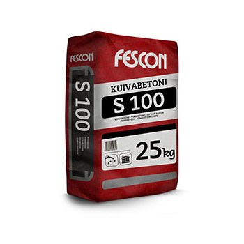 Fescon Kuivabetoni S 100 on sementtiperustainen kuivabetoni, joka soveltuu rakennusten yleisimpiin valutöihin. Maksimiraekoko on 10 mm.